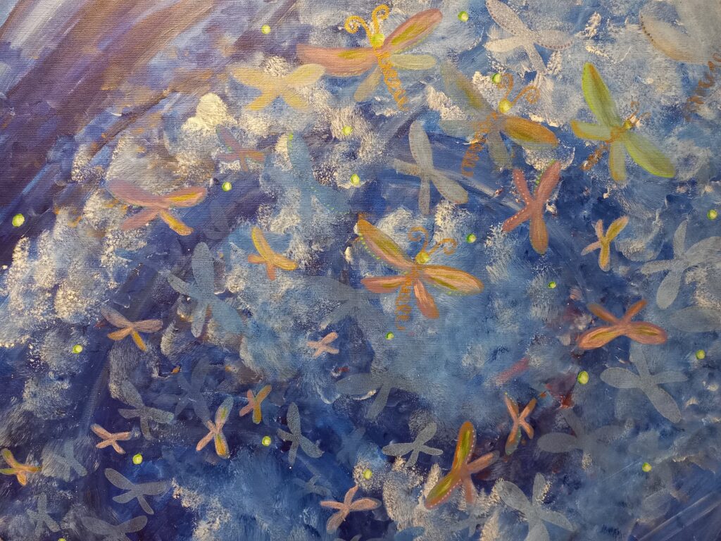 Personligen hittar jag också mycket stillhet i konst och måleri. På sommaren brukar jag arbeta i min sommarateljé och har alltid några projekt igång. Oftast blir det mycket skapande med pannåer och canvas i olika format men också en del akvarell. Det finns något meditativt i konsten och måleriet; när hjärnan bara använder högra halvan så försvinner tid och rum och den där stillheten som man längtar efter infinner sig. Det som alltid är den stora utmaningen är att hitta tid till allt man vill skapa och göra i livet. Nyckeln är att ta små steg, ha tålamod, inte ge upp och arbeta på kontinuerligt så når man så småningom sitt mål.